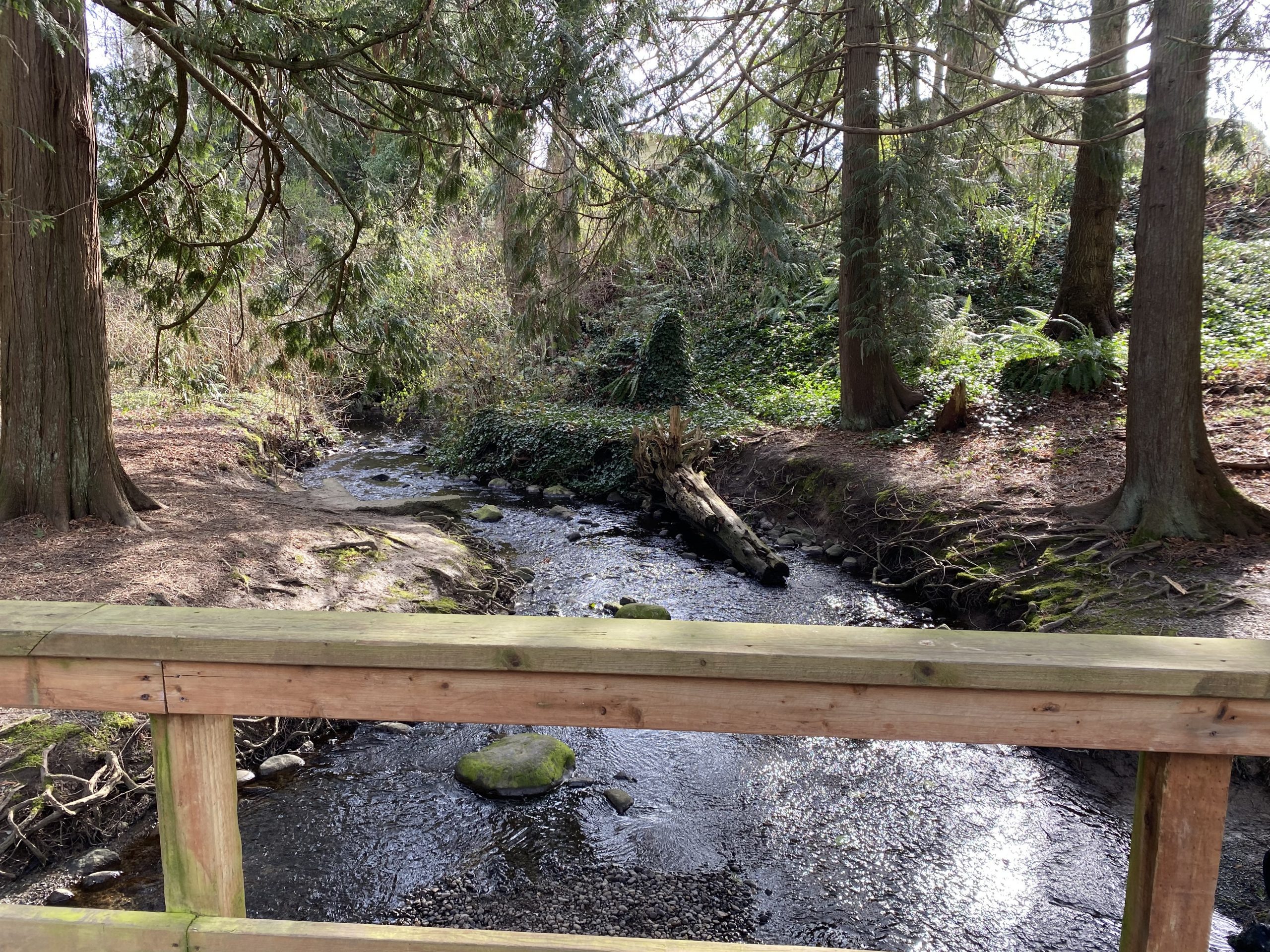 Reay Creek Park is a significant natural area in Sidney. This wooded linear park connects adjacent neighborhoods and Peter Grant Park. Pathways run alongside the creek, under the cover of the forest canopy. It is an environmentally sensitive area with a spawning creek and is known for great bird watching.